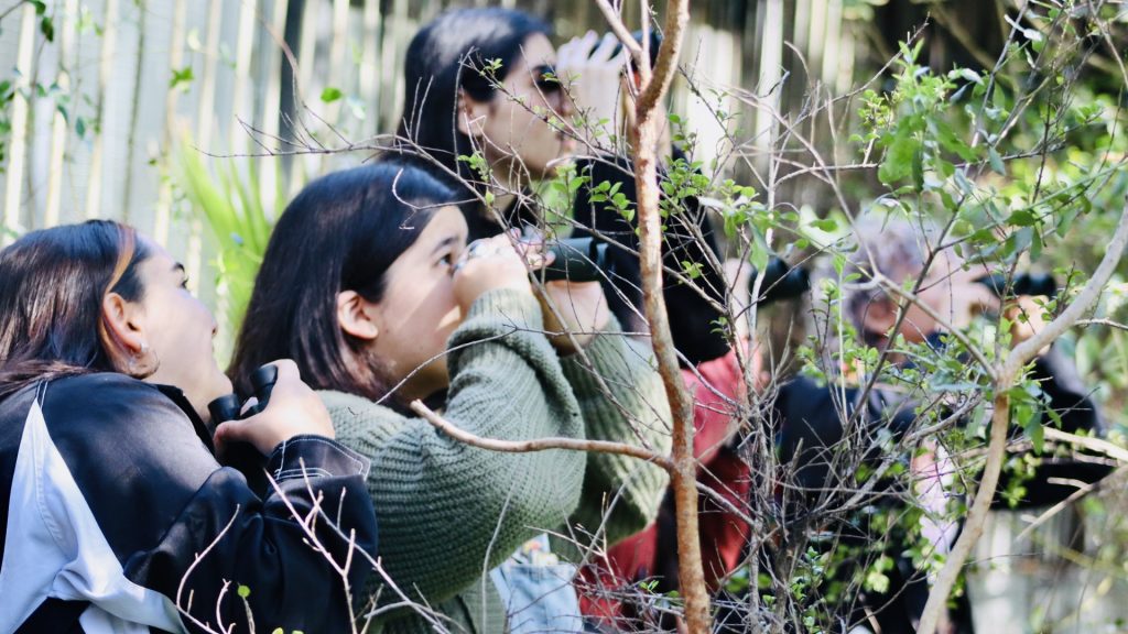 Actividad de mediación patrimonio natural de la UMCE, con comunidad umce, estudiantes, funcionarios/as y docentes UMCE. Junto a colectivo Tiuque Urbano, estudiantes del departamento de Biología UMCE, proyecto financiado por