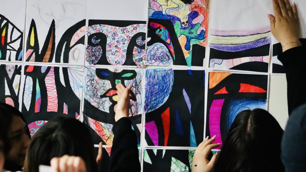 Recorrido por Murales de la universidad, contenidos generales sobre la arquitectura UMCE y visita a Galeria Nemesio Antúnez. La actividad práctica, se realizó en la aplicación de Memeapp y desarrollo de mural colectivo a partir de la intervención de imagen de mural del artista nacional Mono González, que se encuentra en el frontis de la Biblioteca central.